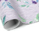Um belo papel de presente com frutas roxas sobre um fundo de papel de textura áspera em lavanda