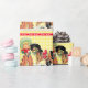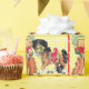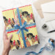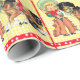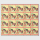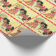 Garota vadia com impressão de cavalo em papel de embrulho de presente. O fundo é amarelo com uma borda vermelha e branca. Este design está disponível em outros suprimentos.
