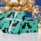 Gatos negros em retrorreflectores sentam em diferentes poses. Este design adiciona um fundo aqua com sotaque estelar.