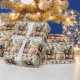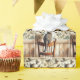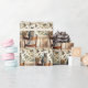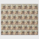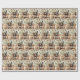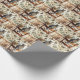 Um gato-do-mato pisca numa cadeira de madeira, observando com facilidade um papel de parede decorado com ilustrações de aves e designs florais
