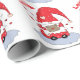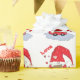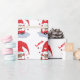 Um delicioso papel branco embrulhando o padrão de um gnomo de desenho vermelho com alguns corações e uma letra e a palavra "Amor". Ideal para Dia de os namorados, aniversários, cunhos ou chás de fraldas