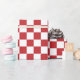 Um papel de envolvimento projetou com um teste padrão checkered vermelho e branco da obscuridade - em tamanho grande. Você pode mudar o vermelho para uma cor diferente.