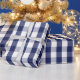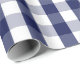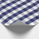 Um papel de envolvimento projetou com um teste padrão do guingão dos azuis marinhos e do branco em tamanho grande.