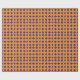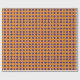 Este papel de embrulho é mostrado com um fundo laranja e um padrão de diamante em azul violeta púrpura e uma faixa amarela mais fina.