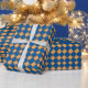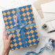 Este papel de embrulho de férias é mostrado com um fundo de Tan e um padrão de diamante em Royal Blue e uma faixa de Chocolate Brown mais fina. Personalize este item ou comprar como está.