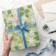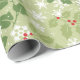 Papel de embrulho de Natal em verduras suaves com frutos vermelhos brilhantes.