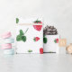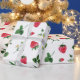 Ilustração das folhas e dos morangos sobre o produto em papel embrulhado