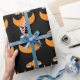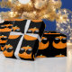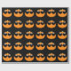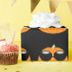 A abóbora de laranja bonita com óculos escuros em um padrão de papel embrulhado em terra preta seria perfeita para uma festa ou presente de Halloween. Escolha entre vários comprimentos e estilos diferentes.