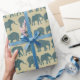 Um giro divertido de Giftwrap, com filas de silhuetas elefantes, cheias de um padrão azul escuro e de Paisley Burgundy, em um fundo bege. Parte da coleção Posh & Painterly 'Heffalumps'.