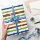 Linhas na moda papel de papel de embrulho. Verde, marrom, alaranjado, azul. Uma combinação de cor perfeita!