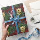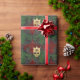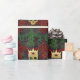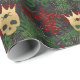 Papel de embrulho verde-vermelho-gótico e crânio-ouro.