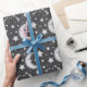 Papel de embrulho cinzento escuro à moda com uma lua do sono e um teste padrão de estrelas. Ideal para envolver acima presentes para um chá de fraldas ou um bebê novo. Artigos de harmonização disponíveis em nossa loja. Também disponível em cores diferentes.