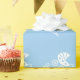 Luz - papel de envolvimento azul com carruagem de bebê bonito e nome ou monograma personalizado. Ideia bonito para presentes do chá de fraldas e de primeiro aniversario. Carrinho de criança de bebê adorável/design com erros/infantil do pram com corações pequenos. Papel de embrulho doce para que a mamã nova ou a mamã seja. Imagem neutra para o menino ou a menina. Cor customizável do fundo. o IE amarela brandamente, rosa pastel, roxo, cinzas ou luz - azul. Tipografia elegante do roteiro.