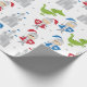 Cavaleiro bonito, castelo e padrão de embrulho de dragão. Perfeito para festas de aniversário.