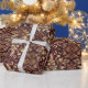 Presente Maçã de papel e ouro embrulhada em vinheta