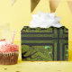 Cercada por uma borda de nós Celtas, uma floresta mística estilizada e cavaleira em tons de verde. No Livro Celta dos Talibã, há um poema chamado Cad Goddeu, ou a 'Batalha das Árvores'. Nesta batalha mítica em Caer Nefenhir, o poderoso bruxo Gwyddion transformou uma floresta de árvores em um exército atacante.