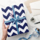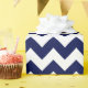 Um papel de embrulho projetado com um padrão de fevron branco e azul-marinho em grande tamanho. Você pode mudar o azul do marinho para uma cor diferente.