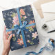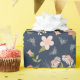 Papel de embrulho modesto inspirado por flores botânicas e abelhas em tons de azul marinho, pincel e pêssego. Perfeito para casamentos e chás de panela de jardim botânico.