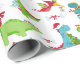 Um Óptico Papel De Embalagem Para Crianças De Natal De Diferentes Dinossauros Vestindo Cabelos E Antenas De Papai noel