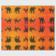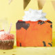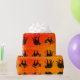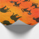 Gatos Pretos em papel de embrulho de Halloween de fundo laranja.