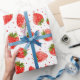 Morangos e pontos vermelhos e brancos em um padrão uniforme, tema do chá de fraldas.