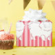 Papel de embrulho de papel para prenda da Pomerânia, papel de embrulho vermelho e listras cor-de-rosa. Cachorro da Pomerânia - Cachorro embrulhando papel Pom-dog Presente embrulhando papel namorados listras vermelhas silhueta. papel embrulhando silhueta de cachorro. Design de Arte por Ines Miller.