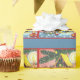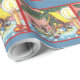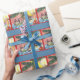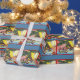 Imagem natal vintage da cena da Natividade com a Mãe Abençoada, o bebê Jesus, vacas, a manga e os três sábios sob a árvore de Natal. Uma vela grande acende a cena.