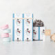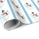 Este papel de embrulho apresenta bonitos bonecos de neve segurando Enfeites de natal de floco de neve. O fundo do papel tem uma faixa azul de coordenação por toda parte.