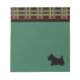 A xadrez preta e verde decora este bloco de notas Terrier escocês. O design é da arte original.