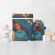 Esta ilustração vibrante captura dois adolescentes, imersos em risos e competição amigável, jogando um videogame. As luzes de Natal cintilantes colocadas contra o fundo azul profundo adicionam um toque de magia ao seu momento alegre.