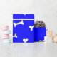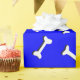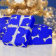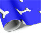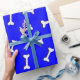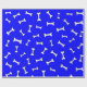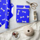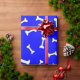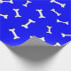 Ossos brancos com efeito simulado de recorte de papel sobre fundo azul. Rolos de papel de presente personalizados para amantes de cães e seus cachorros. Tudo o que se vê é impresso, não será usado nenhum corte de papel no fazer deste produto.