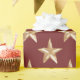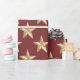 Dobra os presentes com a magia de uma noite celestial artesanal. Esse design de inspiração aquática apresenta estrelas luminosas de ouro, cada uma pintada com pinceladas delicadas, flutuando graciosamente em uma canvas vermelha profunda