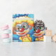 Um palhaço feliz engraçado entre flores amarelas com rostos. Este design parece realmente eficaz nestes papéis de enrolamento