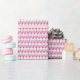 Pansies rosa suave e fúcsia em um fundo de pontos de alfinete fúcsia sobre branco - uma reprodução digital de um padrão de papel de parede retrô