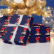 Está aqui um papel de envolvimento engraçado do Natal de Papai Noel que obtem colado na chaminé.