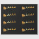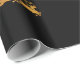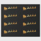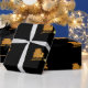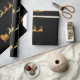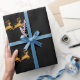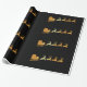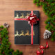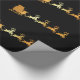 Papel de envolvimento luxuoso com o papai noel dourado do falso grande em seu trenó com rena em um fundo preto. Distinto papel de envolvimento para o Natal.