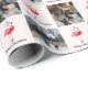 Papel de embrulho fotográfico de Natal com flamingos cor-de-rosa em roupas de Papai noel em fundo rosa e as palavras "Feliz Natal". Basta adicionar suas fotos, adicionar este papel de embrulho ao seu carrinho e preparar-se para a doação de Natal! Papais noeis cor-de-rosa Flamingo Foto de Natal Moldagem Papel Feriado Design | ©Melissa Patton — Artista/Ilustrator