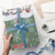 Papel embrulhado com imagens de Natal de Papai Noel, Snowman, Reindeer, Penguin e Papais noeis na floresta de neve de inverno