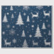 Elevem seu presente com este papel de embrulho de Natal sofisticado com fundo azul-da-meia-noite profundo, cintilando estrelas prateadas, árvores de Natal e renas em folha metálica. O elegante design exude luxo, fazer-o a escolha perfeita para embrulhar presentes em escala alta nesta época de férias. Adicione um toque de sofisticação e charme aos seus presentes com este plástico festivo premium.