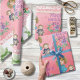 Aproveite este papel fofo cor-de-rosa, apresentando uma bela tipografia, flores em tons roxos e cor-de-rosa, e uma menina e um bebê. O topo e o fundo têm algumas folhas e pequenos corações como quadros decorativos. Esta ilustração pintada manualmente parece fofa em presentes, e sua mãe ficará impressionada. Use este papel de embrulho para embalar seus presentes para sua mãe, avó ou sogra. Feliz Dia de as mães!