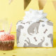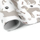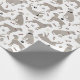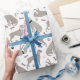 Cães lindos Weimaraner sentam-se, ficam em pé e rollover com ossos de cão espalhados e pegadas em fundo branco.