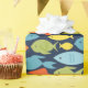 Espelho cônico com peixes cortados em azul, laranja amarelo e verde. Excelente para chás de fraldas ou festas de aniversário temáticas oceânicas ou marítimas.
