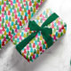 Lembrem-se da maravilha infantil dos feriados com este divertido e festivo papel de embrulho, desenhado com papel de tecido sobreposto Árvores de Natal em cores brilhantes de limão, magenta-rosa, ouro-amarelo, azul-aqua, verde e vermelho.