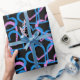 O legal abstrato moderno ouve padrões em rosa e azul sobre fundo preto.