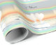 Enrole seu presente especial de primeiro aniversário em papel especial com meu trabalho de arte de corações de papel flutuando na água sob um céu pastel arco-íris. O texto personalizável diz "1 ano".