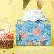 Este papel de embrulho bonito apresenta fundo azul-céu com pandas vermelhas, maçãs douradas cor-de-rosa e amarelas, e folhas de bambu azul-marinho. Você pode encontrar mais produtos de panda vermelha na minha loja.