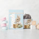 Comemore o primeiro aniversário do seu filho com este belo presente de aniversário de coelhinhos. O design apresenta um coelho soltando um balão de aniversário. O fundo é um sutil padrão azul claro.