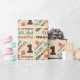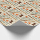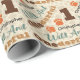Um papel de embrulho de primeiro aniversario em castanho, castanho, laranja, preto e verde para uma festa de aniversário selvagem e maravilhosa com tipografia e pegadas. O fundo tem um padrão de girafa bronzeada para adicionar a qualquer tema safari.