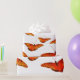 O ARMAZENAMENTO DE PRESENTE É UM BOTÃO PERSONALIZADO QUE VOA LARANJA E BRANCO