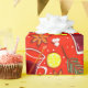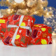 Padrão sem costura de Natal com uma caneca de vinho enrolado sobre fundo vermelho. Um padrão com produtos para vinho de pastilha com limão, cascas e canela. Um padrão para o acondicionamento de papel ou têxteis.